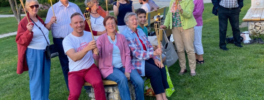 A kora esti búcsúzásnál a gyerekek örömére pedig – ha máglyát nem is, de azért – fáklyát még is csak gyújtottunk. Szeretettel gondoltunk Lappföldre, Rovaniemire, az éjtelen éjre, a közelben és a távolban lévő családtagjainkra, a finn, észt és magyar barátainkra.