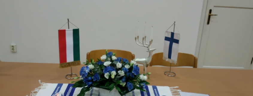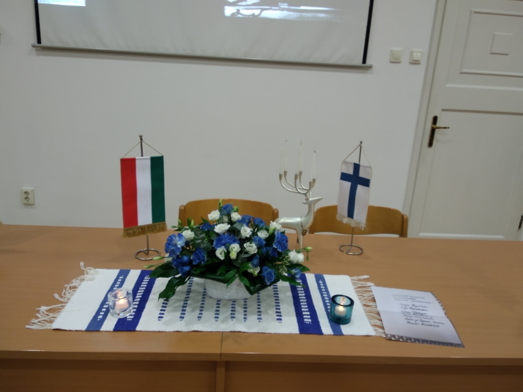 Az ünnepre a virágdíszt és a hétfői hópelyheket a Rovaniemi Finn-Magyar Társaság tagjai küldték.