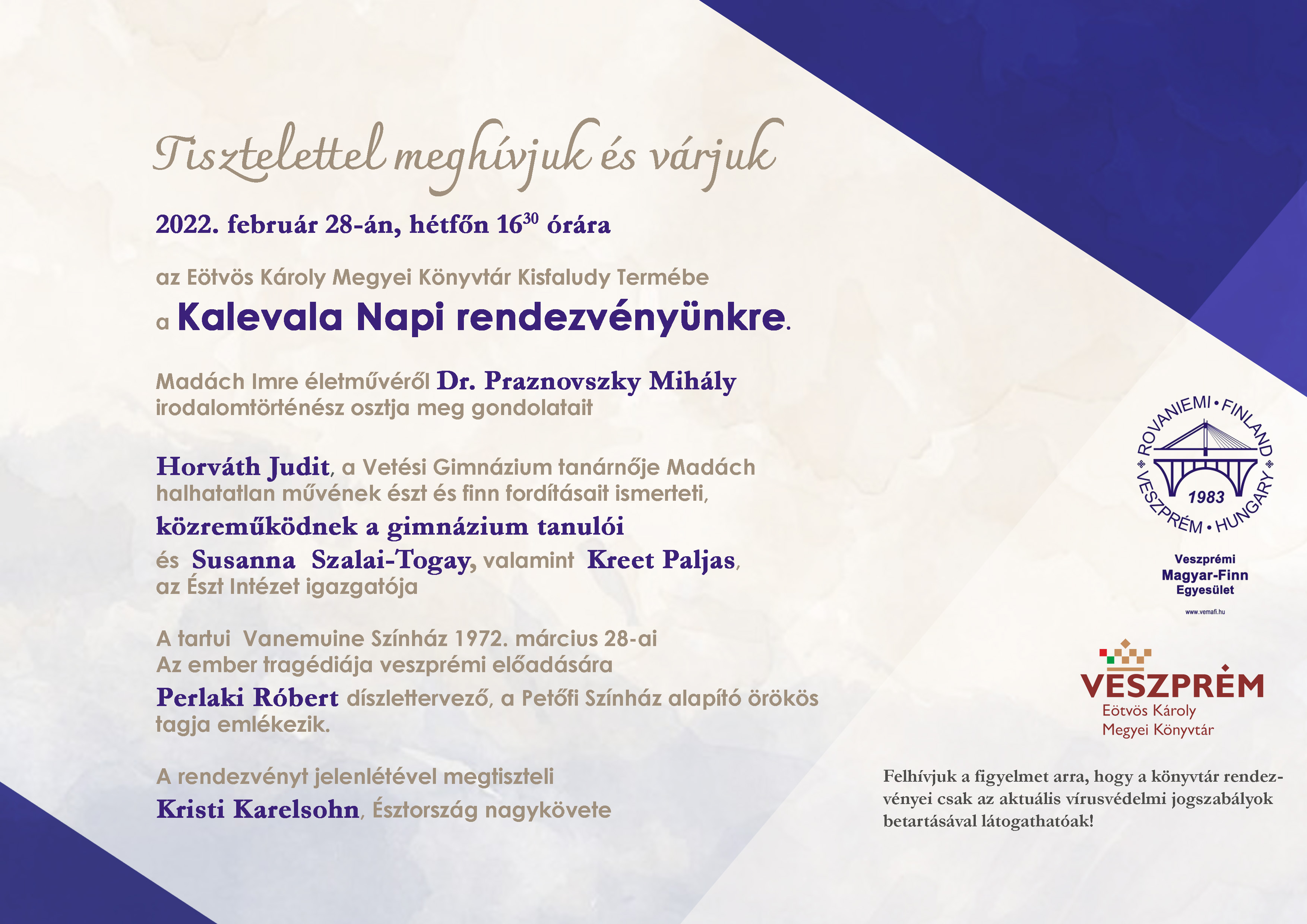 Meghívó Kalevala Napi rendezvényünkre 2022-02-21/in Egyéb /by Pálfy János http://www.vemafi.hu/vemafi/wp-content/uploads/sites/2/2018/08/vemafi_logo.png 257 257 Pálfy János /wp-content/uploads/sites/2/2018/08/vemafi_logo.png Pálfy János2022-02-21 14:44:472022-02-21 14:45:07Meghívó Kalevala Napi rendezvényünkre