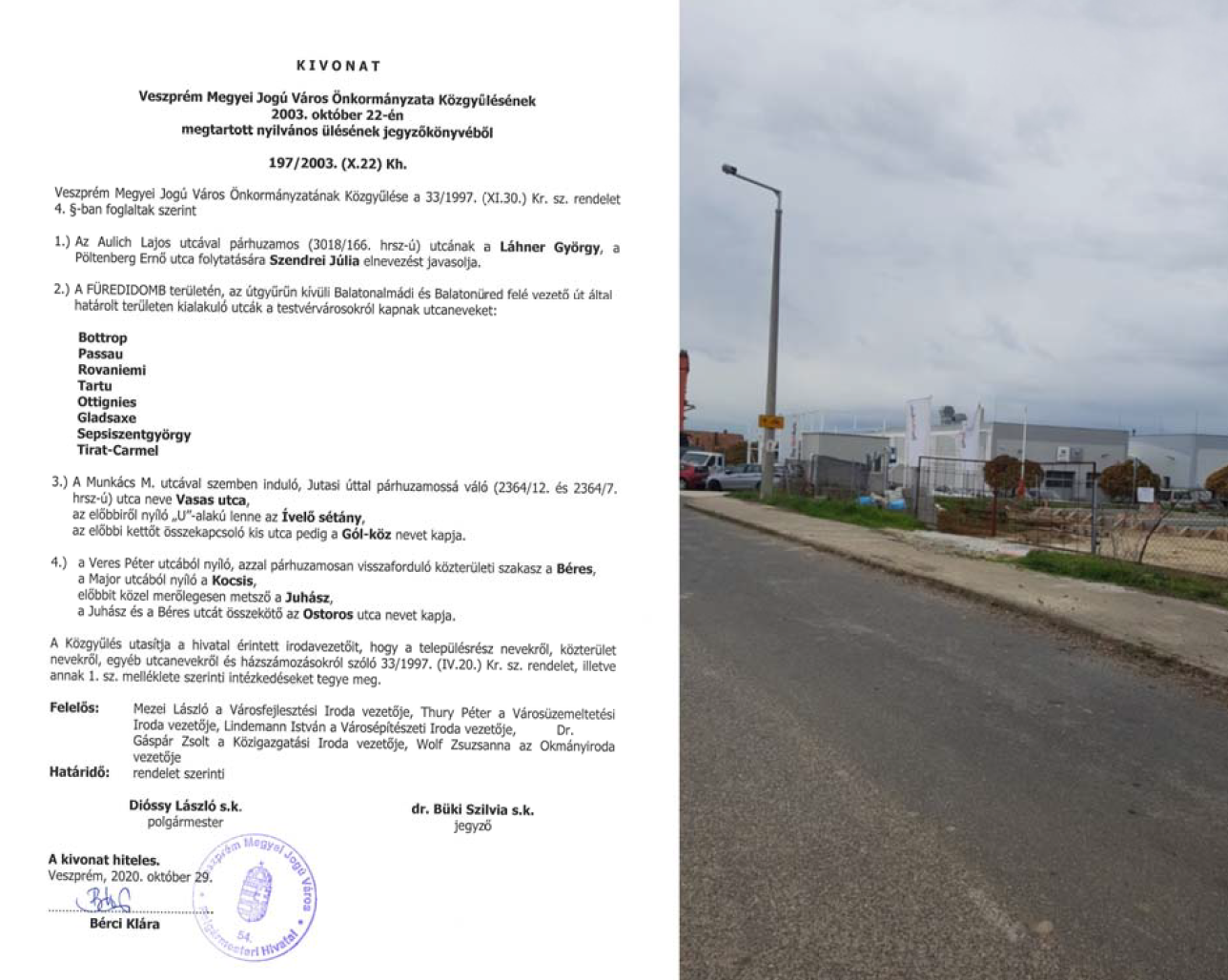 Alig múlt egy éve, hogy telt házzal – még távolságtartás nélkül – ünnepeltük együtt a Rovaniemi-Veszprém45 címmel szerveze? jubileumot. A két polgármester aláírásával erősítette meg jövőre szólóan az együttműködést. A testvérvárosok utcáinak nevét viselő terület – a Balatonalmádi út felé eső rész minden bizonnyal – fejlesztés alatt vagy inkább előtt áll.